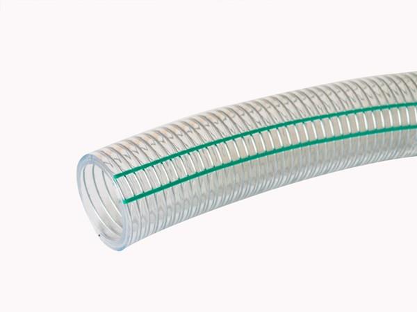 PVC steel wire hose is widely used for drawing and conveying water, oil and powder in factories, agriculture, engineering, foodstuffs and sanitation lines. The PVC steel wire hose, with steel wire screwing inlaided in the tube, is light, transparent with small bending radius. It has good adaptability to harsh conditions and minus pressure. The hoses looks much better with colorful symbol lines on the surface of the hose.